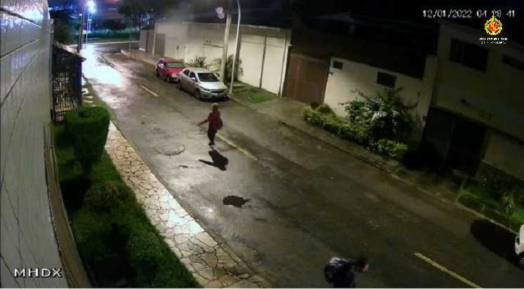 Em outra imagem, o comparsa dele aparece coberto por uma manta, fingindo dormir na calçada. Quando ele percebe que a rua está tranquila, ele levanta e dá apoio ao ladrão.