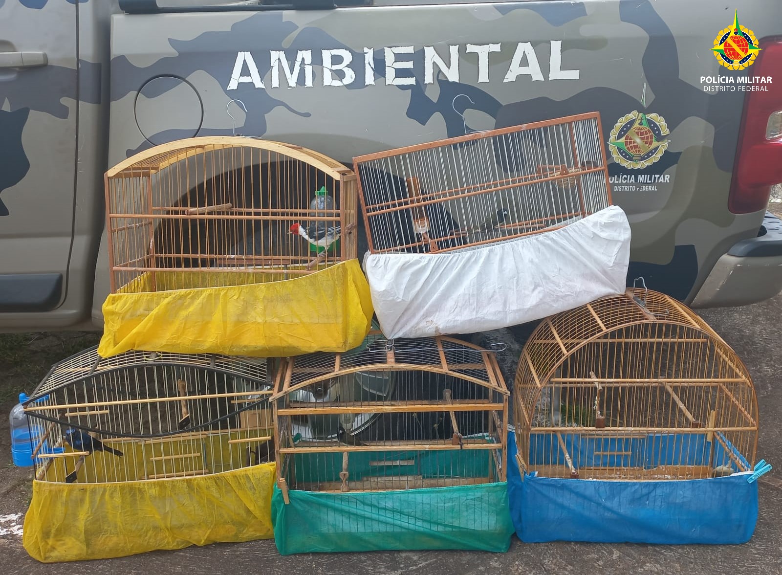 Dentro da residência do conjunto C, o GOC encontrou dois baianos, um azulão, um cardeal do nordeste e um bigodinho. As cinco gaiolas que estavam na casa também foram apreendidas.