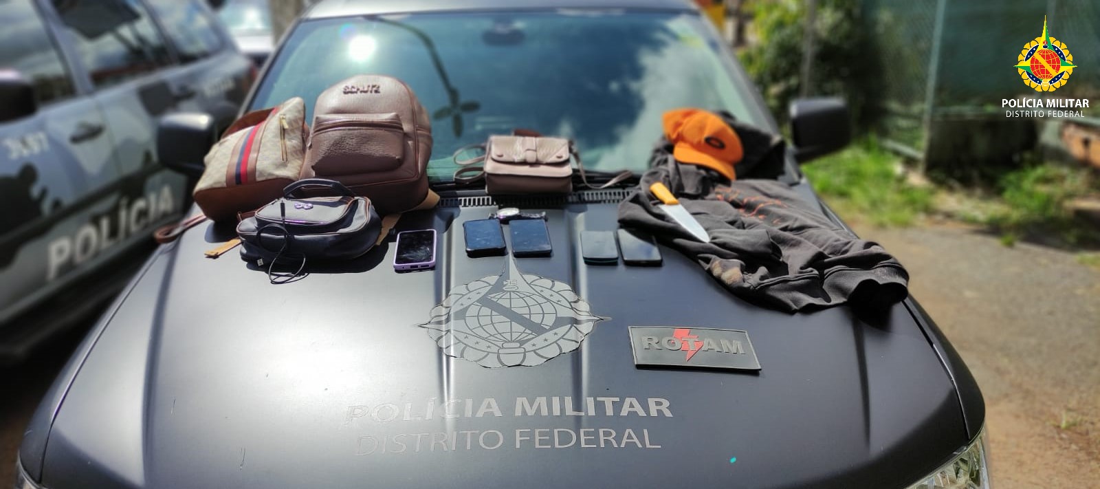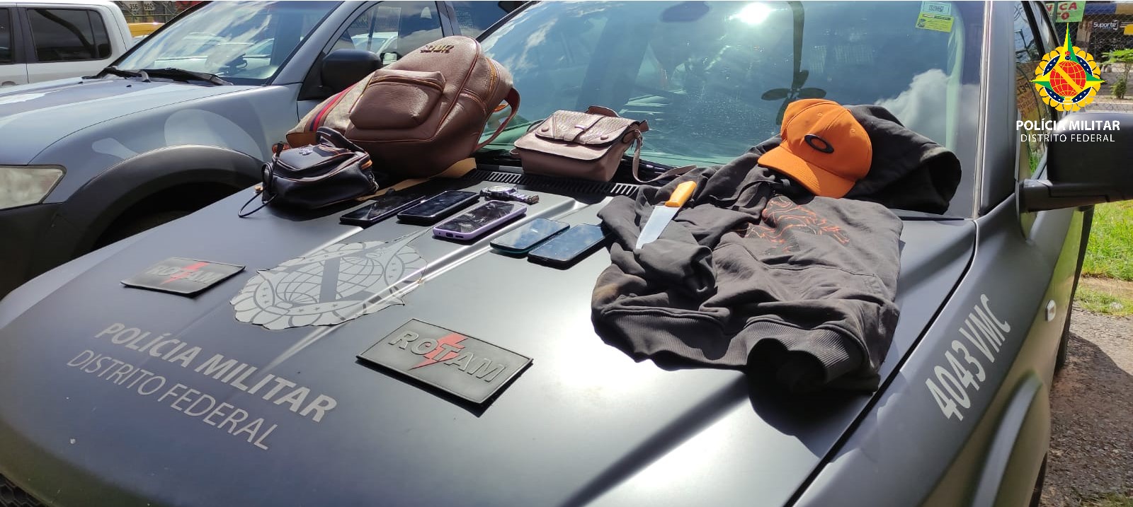 Dois homens foram detidos pelos policiais militares da Rotam após um roubo de coletivo na BR 070, na manhã desta sexta-feira (15), em Taguatinga. Dois policiais se deslocavam para o Batalhão quando viram o ônibus parado e um homem desembarcando com várias bolsas femininas.
