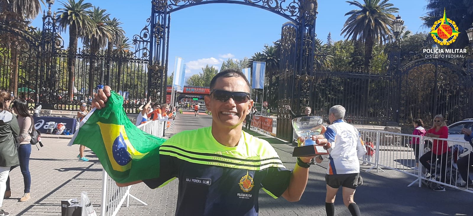 O major Pereira Silva alcançou o terceiro lugar geral na Maratona Internacional de Mendonza, realizada na manhã deste domingo (01), na Argentina. “Estou fazendo o melhor por mim, pela PMDF e pelo Brasil, praticando saúde”, afirmou o policial lotado no Batalhão de Aviação Operacional (Bavop).