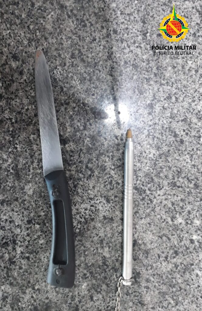 O agressor, após varredura no local, foi capturado embaixo de um veículo e a faca encontrada no mato.