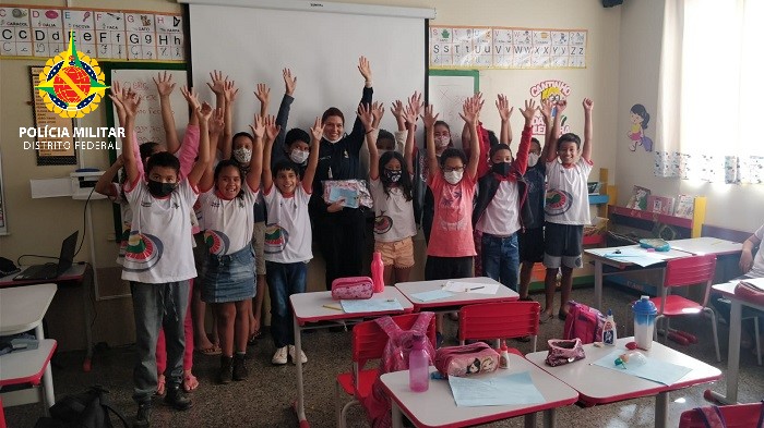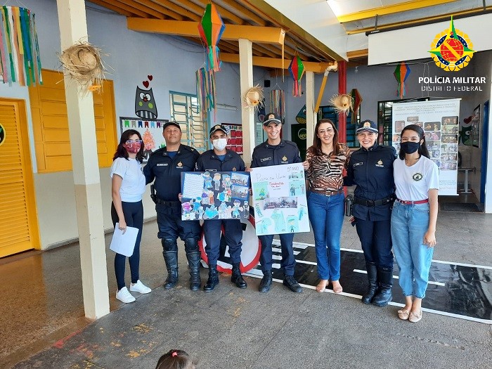 Vale dizer também que os alunos, juntamente com a Escola Classe Olhos D’Água, prepararam uma homenagem especial para os policiais que ali estavam. Entregaram cartazes com recortes e um texto alusivo à Polícia Militar do Distrito Federal. Foi um momento muito emocionante e de reconhecimento para os policiais ali presentes.