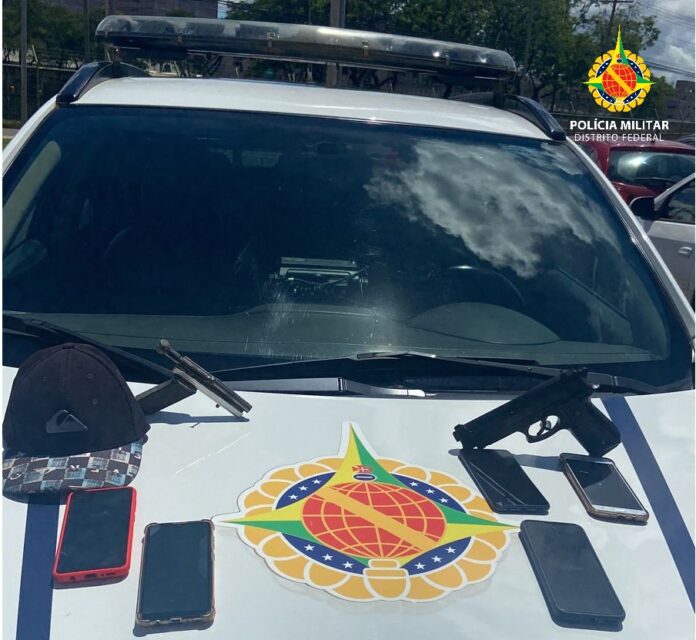 Quatro suspeitos de cometerem um arrastão em Águas Claras foram detidos pelos policiais militares do 17º Batalhão, no inicio da tarde desta quarta-feira (5). Os policiais foram acionados para um roubo de veículo na quadra 207 de Arniqueiras. O carro foi localizado após dois suspeitos serem vistos carregando um galão de gasolina para o veículo roubado que se encontrava em pane seca.