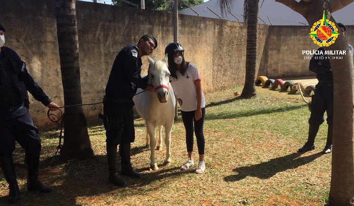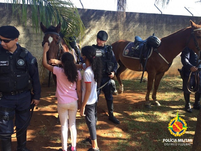 O Projeto, desenvolvido em parceria com a Secretaria de Educação, aconteceu, nesta manhã, na Escola Classe 2 do Riacho Fundo II, com vistas a interação com a comunidade, educadores e policiais. Para o policiamento, a PMDF contou com os policiais e um ser ostensivo, carinhoso, sensível e muito forte; o cavalo.