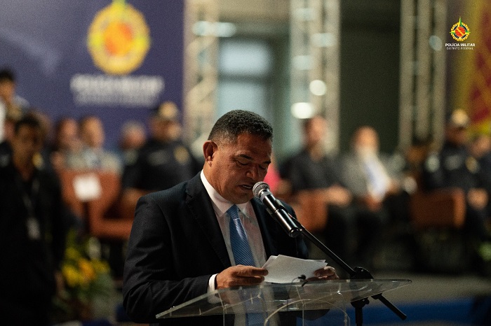 O coronel Carlos Renato Machado Paim, secretário Nacional de Segurança Pública, durante o uso da palavra, pediu para falar como coronel da PMDF. “A caminhada dos senhores e senhoras começou, vocês serão submetidos a conhecimentos técnicos, táticos, preparo emocional e psicológico, mas sobretudo, conhecerão os nossos valores e tradições. Vocês a partir de hoje carregam a responsabilidade de serem policiais militares, vivenciarão todo o passado, o legado das diversas idas e vindas dos nossos antepassados que fizeram a história da nossa corporação”.