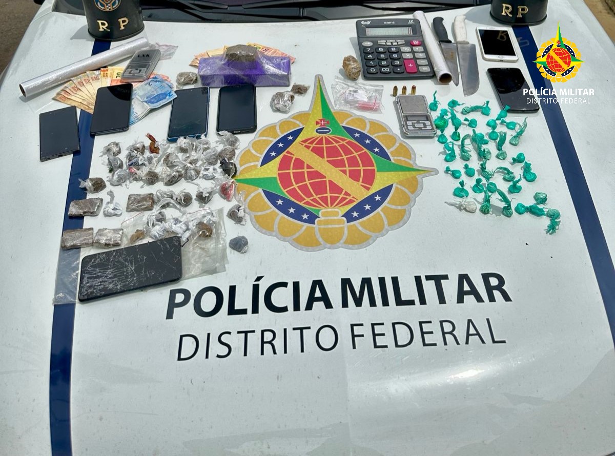 Três indivíduos foram detidos por suspeita de envolvimento com o tráfico de drogas após uma abordagem policial na QNM 24/26, localizada em Ceilândia, por volta das 10h desta sexta-feira (16).