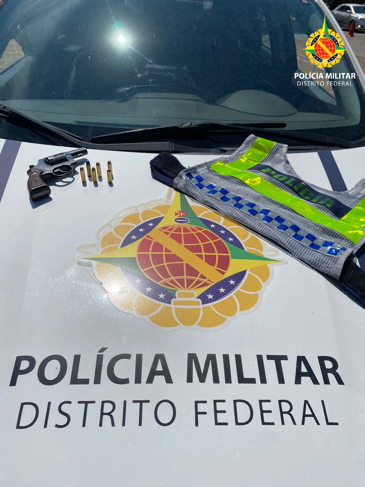 Os três ocupantes estavam bastante nervosos no momento da abordagem. Na busca veicular foi encontrado um revólver calibre 38 com seis munições, cinco intactas e uma deflagrada.