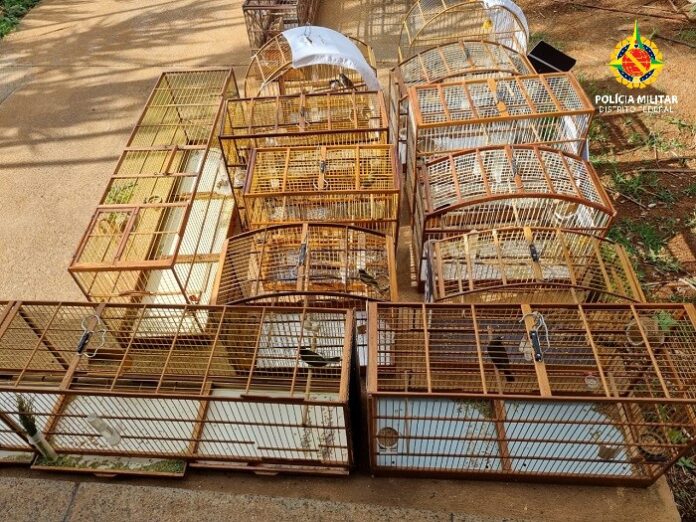 Um jabuti e 18 pássaros silvestres foram apreendidos por policiais militares do Grupamento de Operações no Cerrado (GOC), em patrulhamento no Setor P Norte, em Ceilândia.